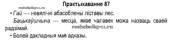 Готовая домашняя работа с ответами по Белорусскому языку за 5 класс Красней, Несцяровіч, Васюковіч, Лаурель Учебник Часть 1, 2 Национальный институт образования 2014 ФГОС - Часть 2. Практыкаванні 87