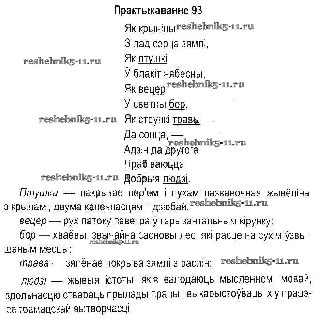 Готовая домашняя работа с ответами по Белорусскому языку за 5 класс Красней, Несцяровіч, Васюковіч, Лаурель Учебник Часть 1, 2 Национальный институт образования 2014 ФГОС - Часть 2. Практыкаванні 93