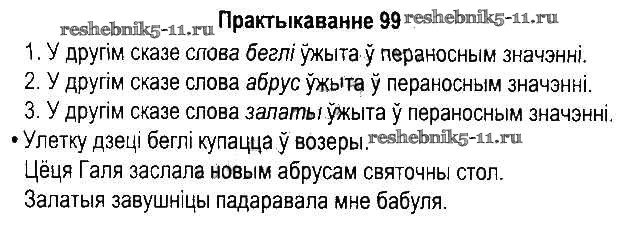 Готовая домашняя работа с ответами по Белорусскому языку за 5 класс Красней, Несцяровіч, Васюковіч, Лаурель Учебник Часть 1, 2 Национальный институт образования 2014 ФГОС - Часть 2. Практыкаванні 99