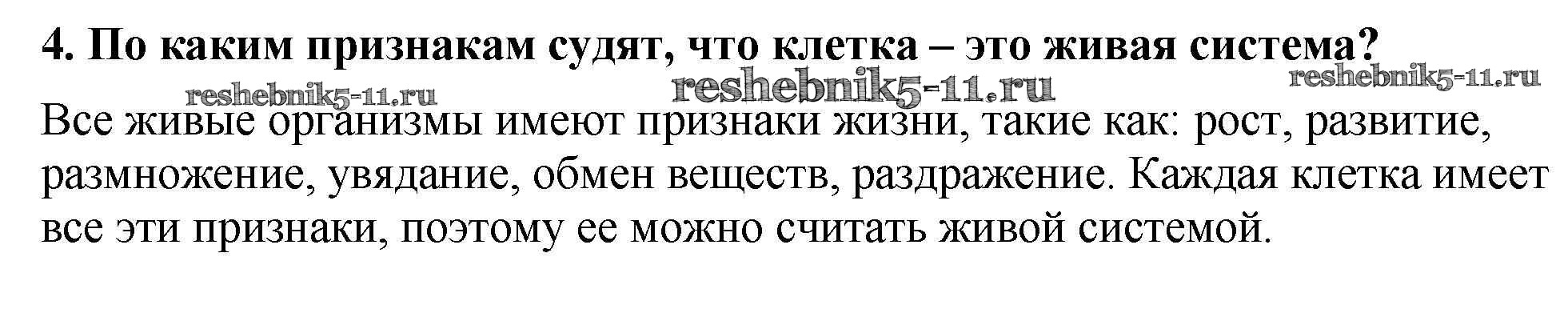 Готовая домашняя работа с ответами по Биологии за 5 класс Пономарева, Николаев, Корнилова Учебник Алгоритм успеха Вентана-граф 2016 ФГОС - §7. Процессы жизнедеятельности клетки 4