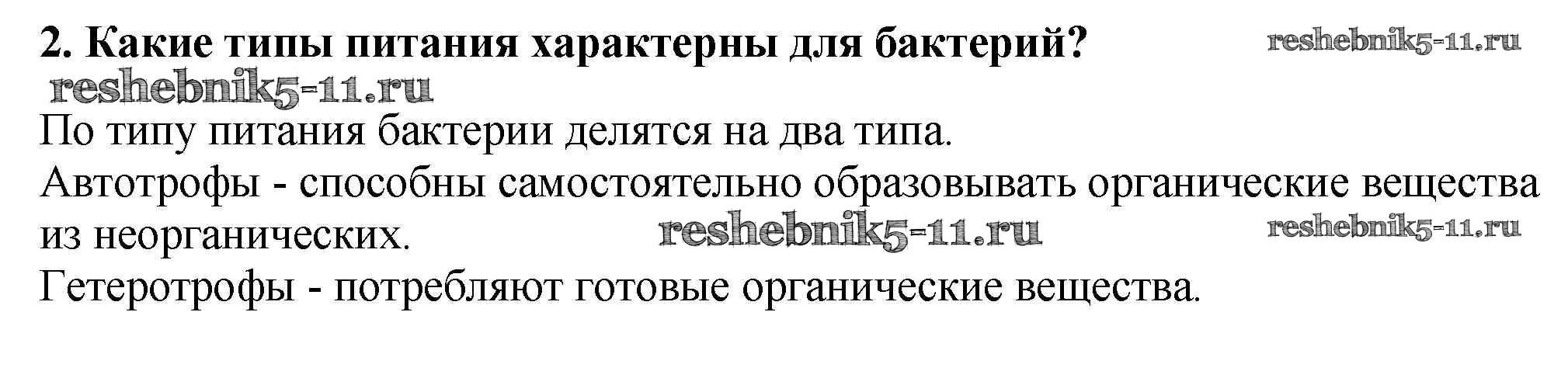 Готовая домашняя работа с ответами по Биологии за 5 класс Пономарева, Николаев, Корнилова Учебник Алгоритм успеха Вентана-граф 2016 ФГОС - §9. Бактерии: строение и жизнедеятельность 2