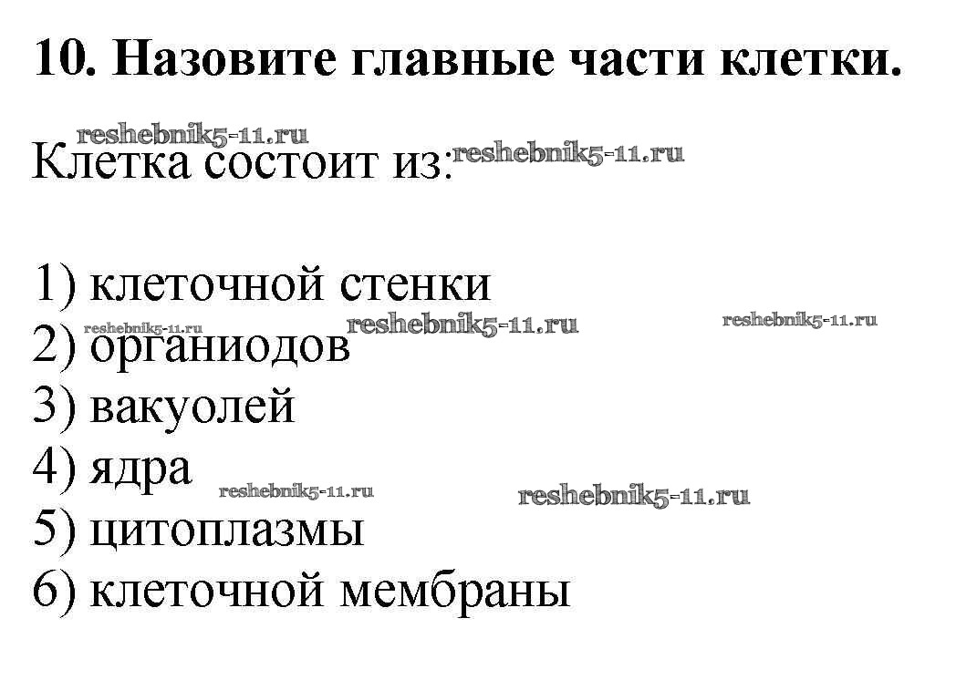 Готовая домашняя работа с ответами по Биологии за 5 класс Пономарева, Николаев, Корнилова Учебник Алгоритм успеха Вентана-граф 2016 ФГОС - Проверьте себя 10