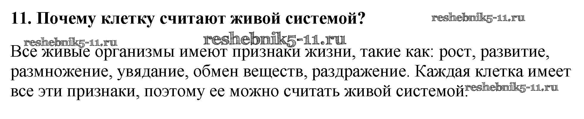 Готовая домашняя работа с ответами по Биологии за 5 класс Пономарева, Николаев, Корнилова Учебник Алгоритм успеха Вентана-граф 2016 ФГОС - Проверьте себя 11