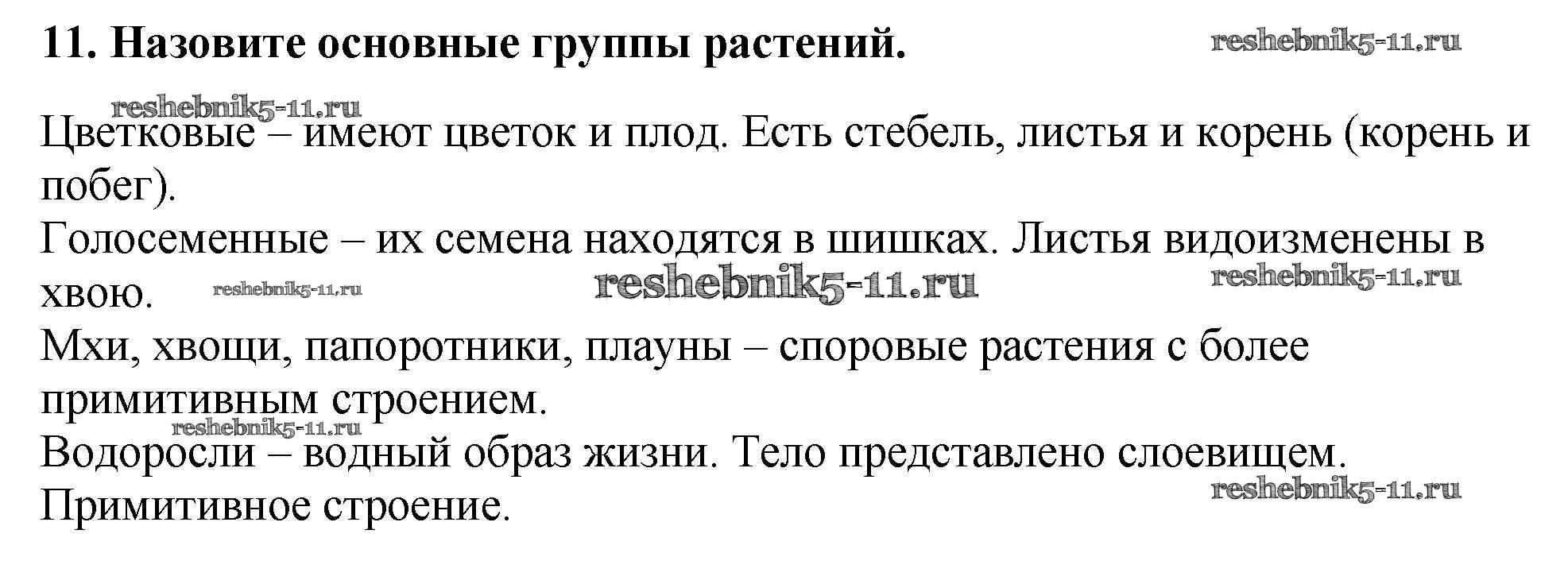 Готовая домашняя работа с ответами по Биологии за 5 класс Пономарева, Николаев, Корнилова Учебник Алгоритм успеха Вентана-граф 2016 ФГОС - Проверьте себя 11