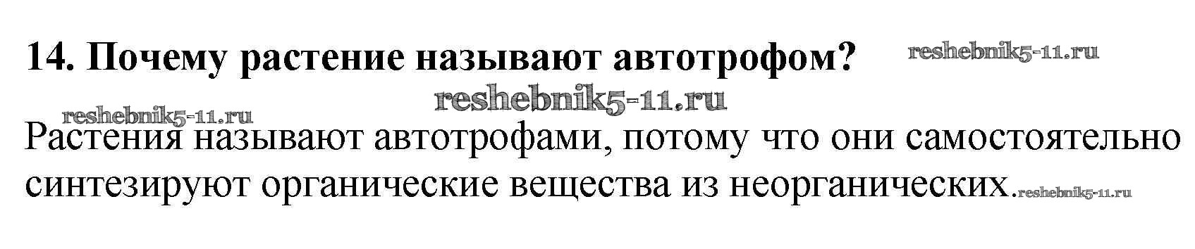 Готовая домашняя работа с ответами по Биологии за 5 класс Пономарева, Николаев, Корнилова Учебник Алгоритм успеха Вентана-граф 2016 ФГОС - Проверьте себя 14