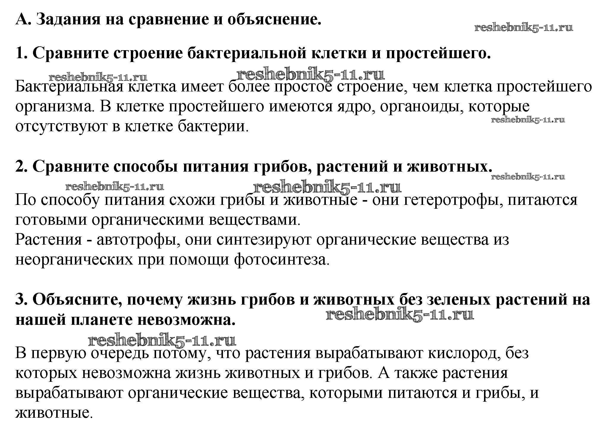 Готовая домашняя работа с ответами по Биологии за 5 класс Пономарева, Николаев, Корнилова Учебник Алгоритм успеха Вентана-граф 2016 ФГОС - Выполните задания А