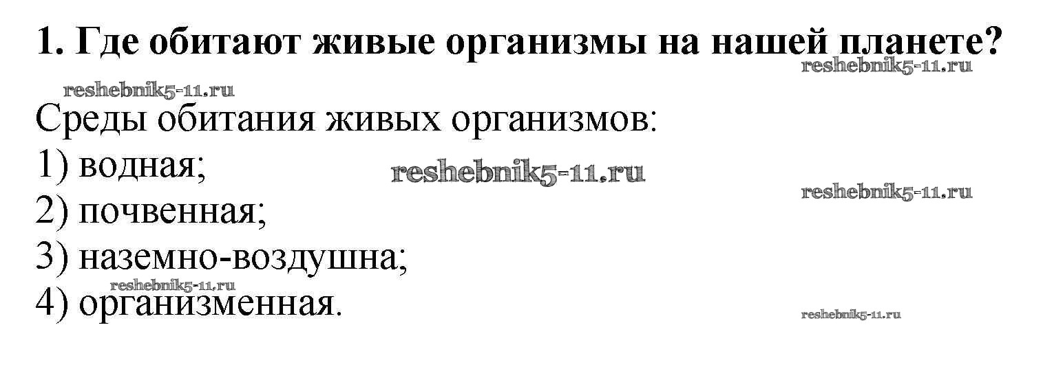 Готовая домашняя работа с ответами по Биологии за 5 класс Пономарева, Николаев, Корнилова Учебник Алгоритм успеха Вентана-граф 2016 ФГОС - Проверьте себя 1
