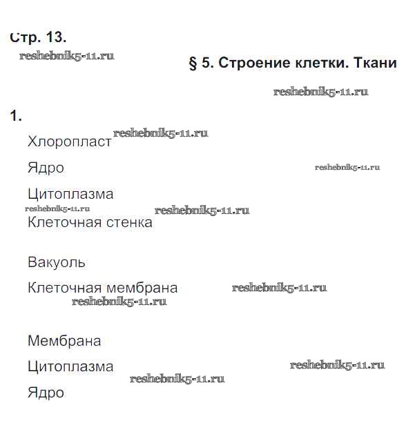 Готовая домашняя работа с ответами по Биологии за 5 класс Корнилова, Симонова, Николаев Рабочая тетрадь Вентана-граф 2020 ФГОС - Страницы тетради 13