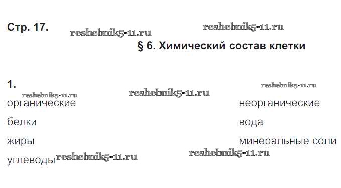 Готовая домашняя работа с ответами по Биологии за 5 класс Корнилова, Симонова, Николаев Рабочая тетрадь Вентана-граф 2020 ФГОС - Страницы тетради 17