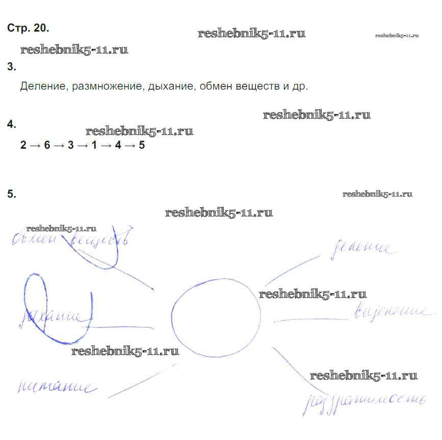 Готовая домашняя работа с ответами по Биологии за 5 класс Корнилова, Симонова, Николаев Рабочая тетрадь Вентана-граф 2020 ФГОС - Страницы тетради 20
