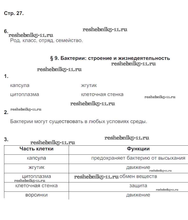 Готовая домашняя работа с ответами по Биологии за 5 класс Корнилова, Симонова, Николаев Рабочая тетрадь Вентана-граф 2020 ФГОС - Страницы тетради 27