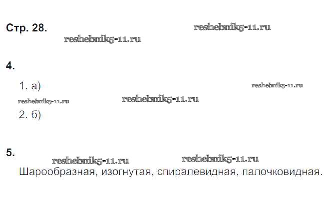 Готовая домашняя работа с ответами по Биологии за 5 класс Корнилова, Симонова, Николаев Рабочая тетрадь Вентана-граф 2020 ФГОС - Страницы тетради 28