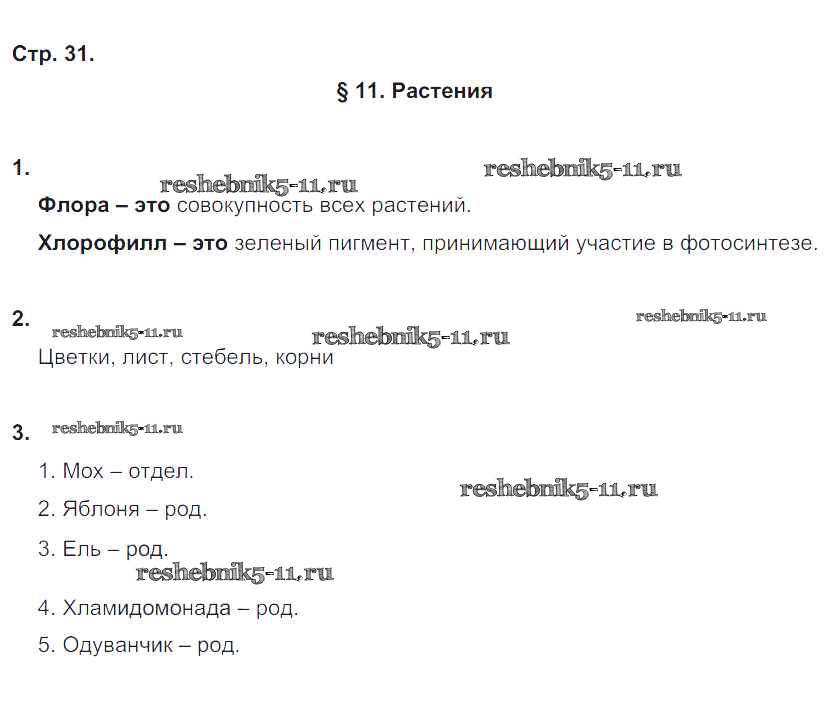 Готовая домашняя работа с ответами по Биологии за 5 класс Корнилова, Симонова, Николаев Рабочая тетрадь Вентана-граф 2020 ФГОС - Страницы тетради 31
