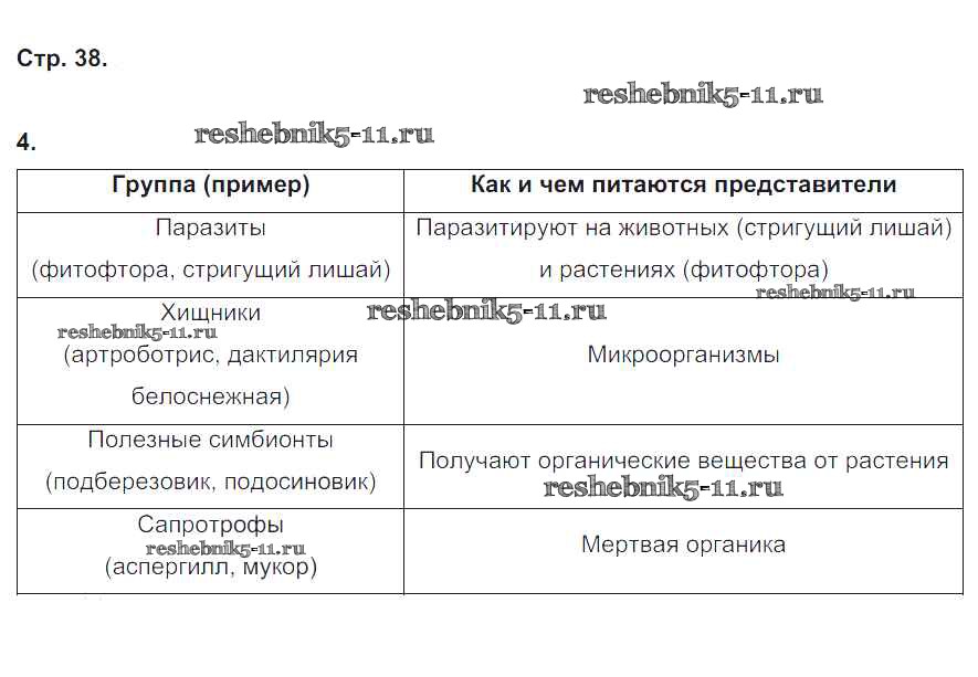 Готовая домашняя работа с ответами по Биологии за 5 класс Корнилова, Симонова, Николаев Рабочая тетрадь Вентана-граф 2020 ФГОС - Страницы тетради 38