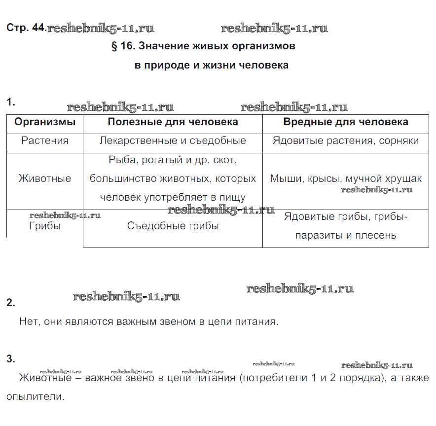 Готовая домашняя работа с ответами по Биологии за 5 класс Корнилова, Симонова, Николаев Рабочая тетрадь Вентана-граф 2020 ФГОС - Страницы тетради 44