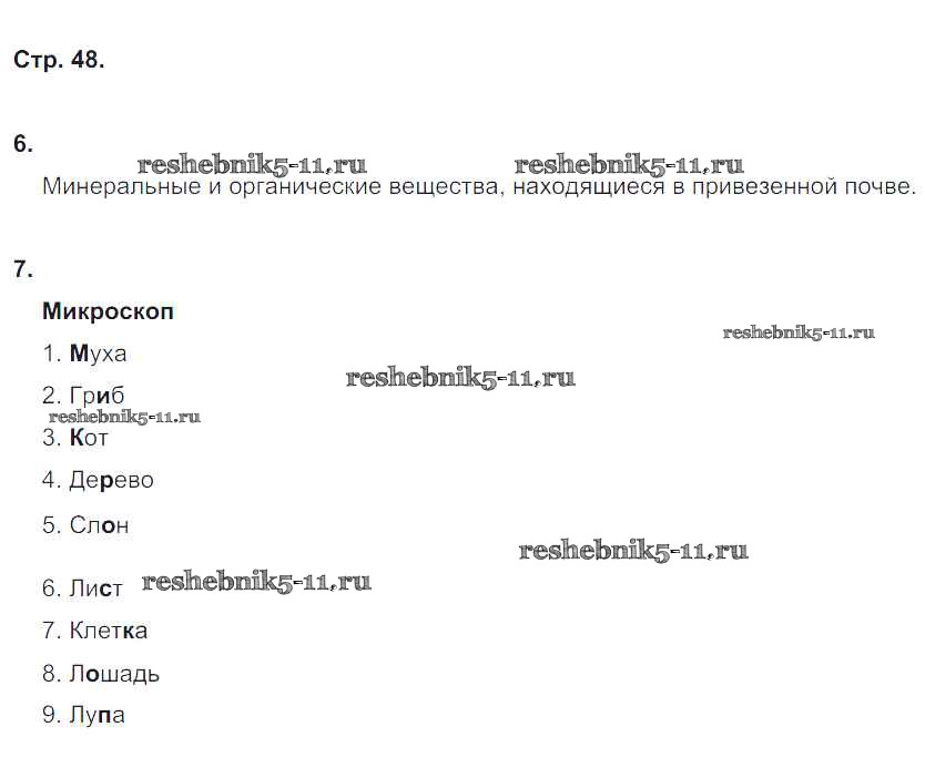 Готовая домашняя работа с ответами по Биологии за 5 класс Корнилова, Симонова, Николаев Рабочая тетрадь Вентана-граф 2020 ФГОС - Страницы тетради 48