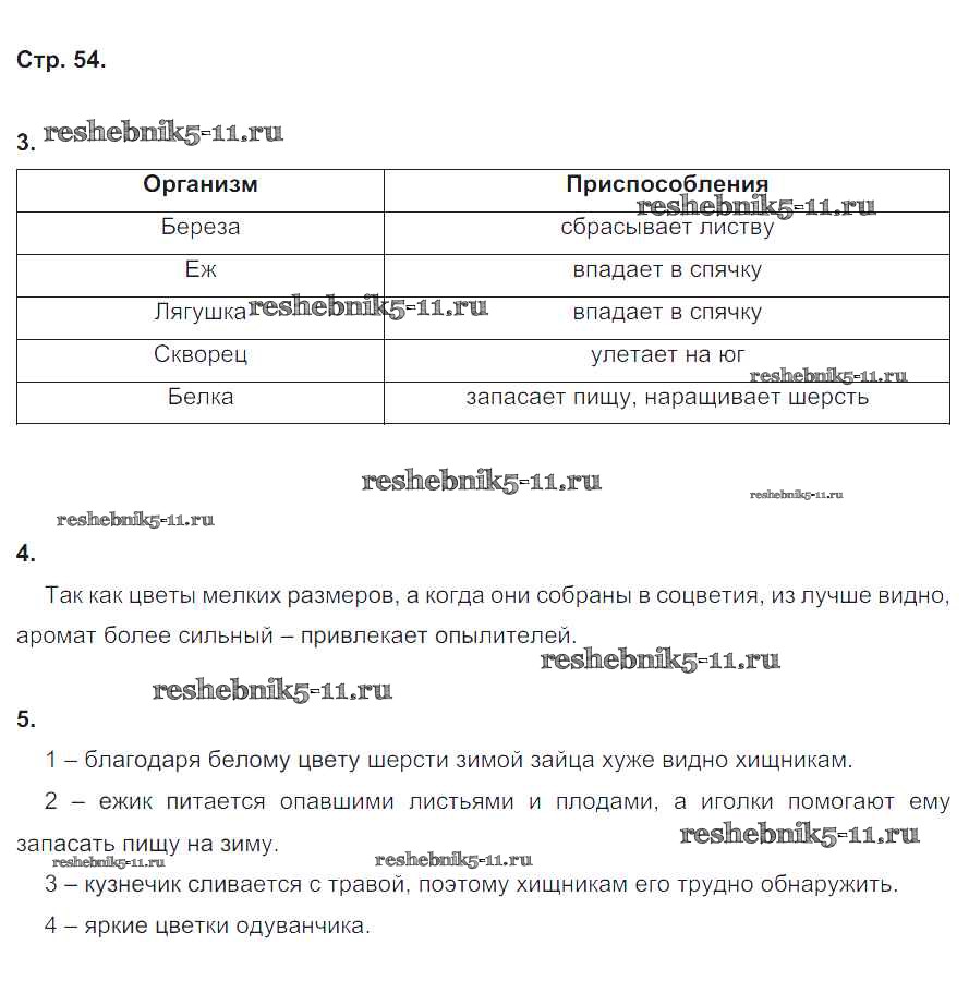 Готовая домашняя работа с ответами по Биологии за 5 класс Корнилова, Симонова, Николаев Рабочая тетрадь Вентана-граф 2020 ФГОС - Страницы тетради 54