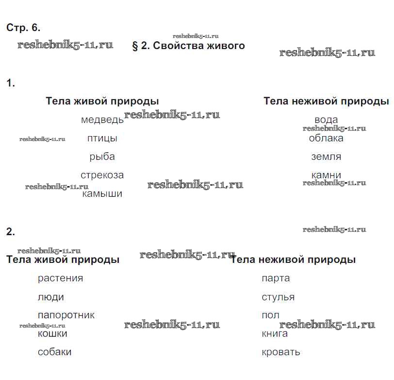 Готовая домашняя работа с ответами по Биологии за 5 класс Корнилова, Симонова, Николаев Рабочая тетрадь Вентана-граф 2020 ФГОС - Страницы тетради 6