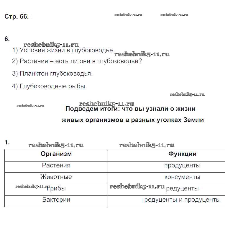 Готовая домашняя работа с ответами по Биологии за 5 класс Корнилова, Симонова, Николаев Рабочая тетрадь Вентана-граф 2020 ФГОС - Страницы тетради 66