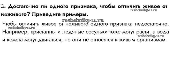 Готовая домашняя работа с ответами по Биологии за 5 класс Сивоглазов, Плешаков Учебник Дрофа 2020 ФГОС - §1. Что такое живой организм 3