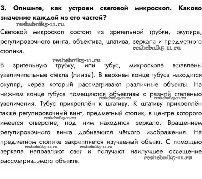 Готовая домашняя работа с ответами по Биологии за 5 класс Сивоглазов, Плешаков Учебник Дрофа 2020 ФГОС - §4. Увеличительные приборы 3