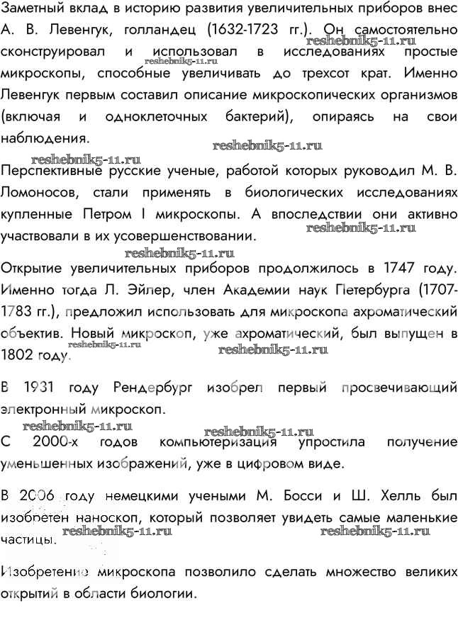 Готовая домашняя работа с ответами по Биологии за 5 класс Сивоглазов, Плешаков Учебник Дрофа 2020 ФГОС - §4. Увеличительные приборы 7