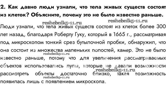 Готовая домашняя работа с ответами по Биологии за 5 класс Сивоглазов, Плешаков Учебник Дрофа 2020 ФГОС - §5. Живые клетки 2