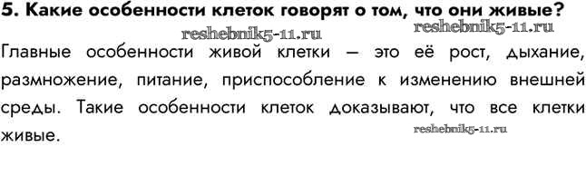 Готовая домашняя работа с ответами по Биологии за 5 класс Сивоглазов, Плешаков Учебник Дрофа 2020 ФГОС - §5. Живые клетки 5