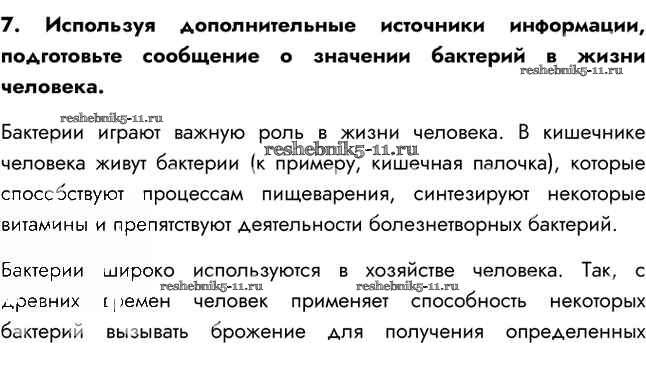 Готовая домашняя работа с ответами по Биологии за 5 класс Сивоглазов, Плешаков Учебник Дрофа 2020 ФГОС - §11. Бактерии 7