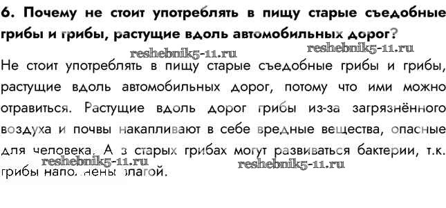 Готовая домашняя работа с ответами по Биологии за 5 класс Сивоглазов, Плешаков Учебник Дрофа 2020 ФГОС - §12. Грибы 6