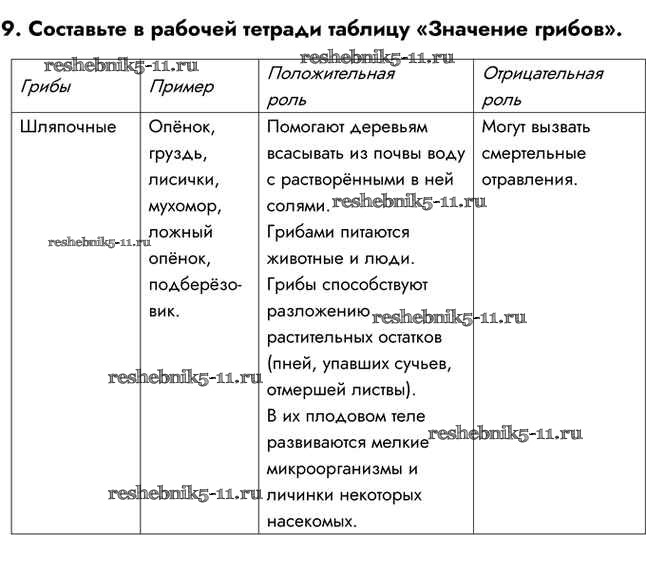 Готовая домашняя работа с ответами по Биологии за 5 класс Сивоглазов, Плешаков Учебник Дрофа 2020 ФГОС - §12. Грибы 9