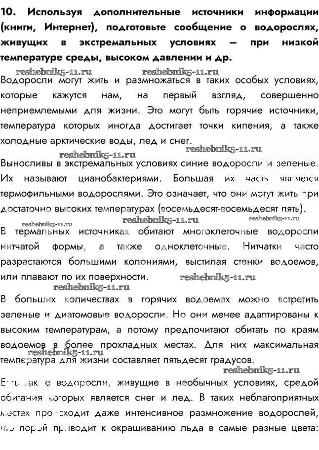 Готовая домашняя работа с ответами по Биологии за 5 класс Сивоглазов, Плешаков Учебник Дрофа 2020 ФГОС - §13. Водоросли 10