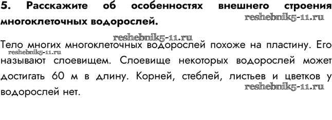 Готовая домашняя работа с ответами по Биологии за 5 класс Сивоглазов, Плешаков Учебник Дрофа 2020 ФГОС - §13. Водоросли 5