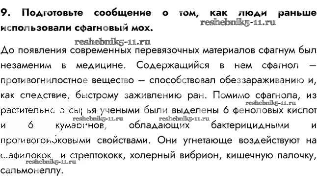 Готовая домашняя работа с ответами по Биологии за 5 класс Сивоглазов, Плешаков Учебник Дрофа 2020 ФГОС - §14. Мхи 9