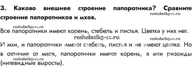 Готовая домашняя работа с ответами по Биологии за 5 класс Сивоглазов, Плешаков Учебник Дрофа 2020 ФГОС - §15. Папоротники 3