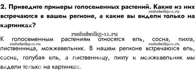 Готовая домашняя работа с ответами по Биологии за 5 класс Сивоглазов, Плешаков Учебник Дрофа 2020 ФГОС - §16. Голосеменные растения 2