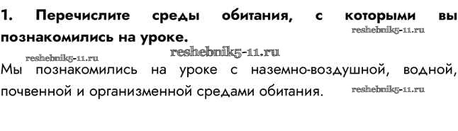 Готовая домашняя работа с ответами по Биологии за 5 класс Сивоглазов, Плешаков Учебник Дрофа 2020 ФГОС - §23. Среды обитания. Экологические факторы 1