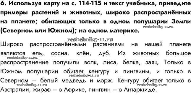 Готовая домашняя работа с ответами по Биологии за 5 класс Сивоглазов, Плешаков Учебник Дрофа 2020 ФГОС - §24. Жизнь на разных материках 6