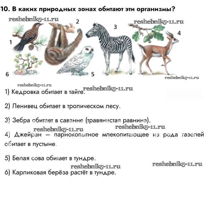 Готовая домашняя работа с ответами по Биологии за 5 класс Сивоглазов, Плешаков Учебник Дрофа 2020 ФГОС - §25. Природные зоны Земли 10