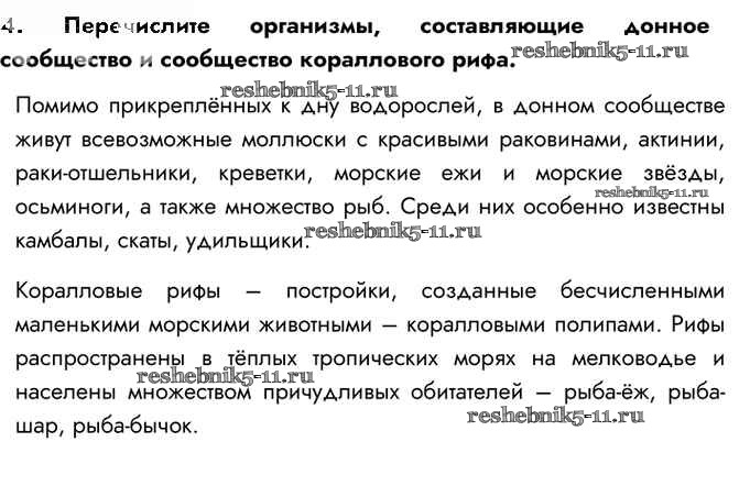 Готовая домашняя работа с ответами по Биологии за 5 класс Сивоглазов, Плешаков Учебник Дрофа 2020 ФГОС - §26. Жизнь в морях и океанах 4