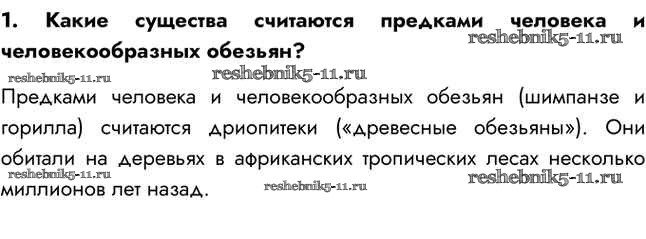 Готовая домашняя работа с ответами по Биологии за 5 класс Сивоглазов, Плешаков Учебник Дрофа 2020 ФГОС - §27. Как появился человек на Земле 1