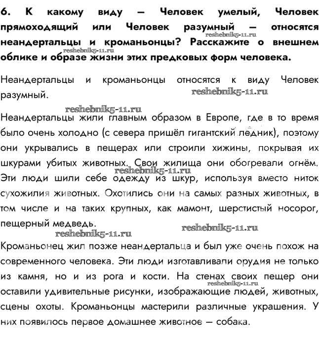 Готовая домашняя работа с ответами по Биологии за 5 класс Сивоглазов, Плешаков Учебник Дрофа 2020 ФГОС - §27. Как появился человек на Земле 6