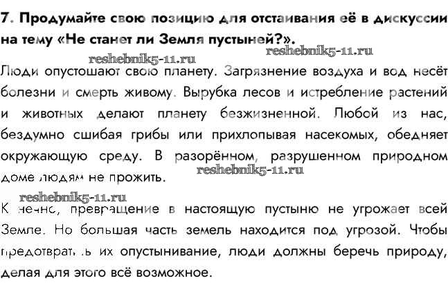 Готовая домашняя работа с ответами по Биологии за 5 класс Сивоглазов, Плешаков Учебник Дрофа 2020 ФГОС - §30. Не станет ли Земля пустыней? 7