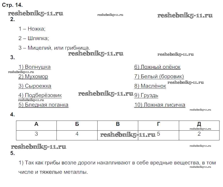 Готовая домашняя работа с ответами по Биологии за 5 класс Новикова, Романова Рабочая тетрадь Инновационная школа Русское слово 2019 ФГОС - Страницы 14