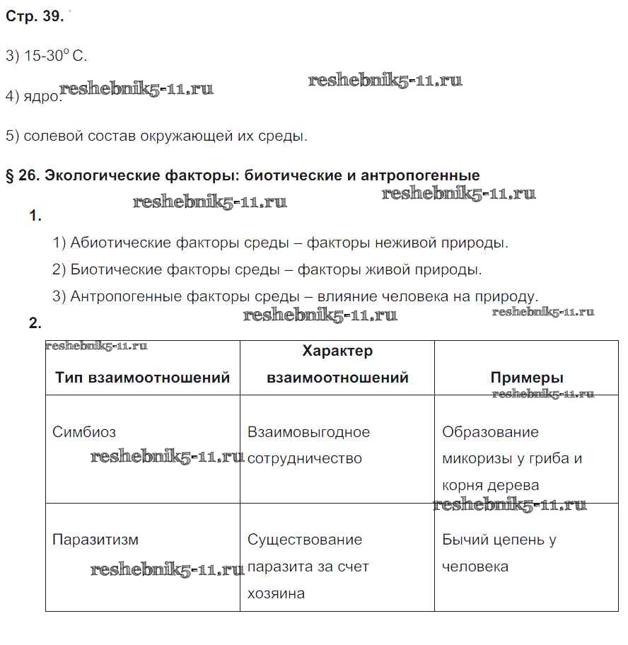 Готовая домашняя работа с ответами по Биологии за 5 класс Новикова, Романова Рабочая тетрадь Инновационная школа Русское слово 2019 ФГОС - Страницы 39