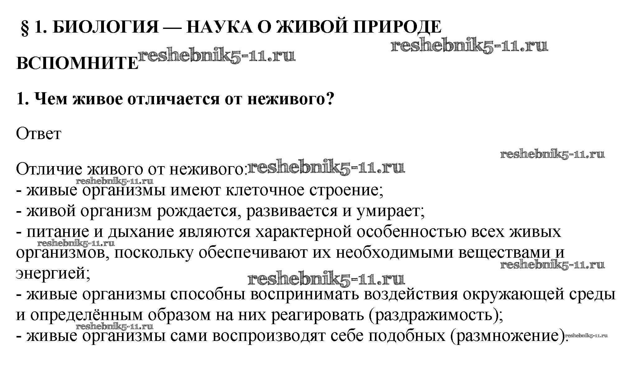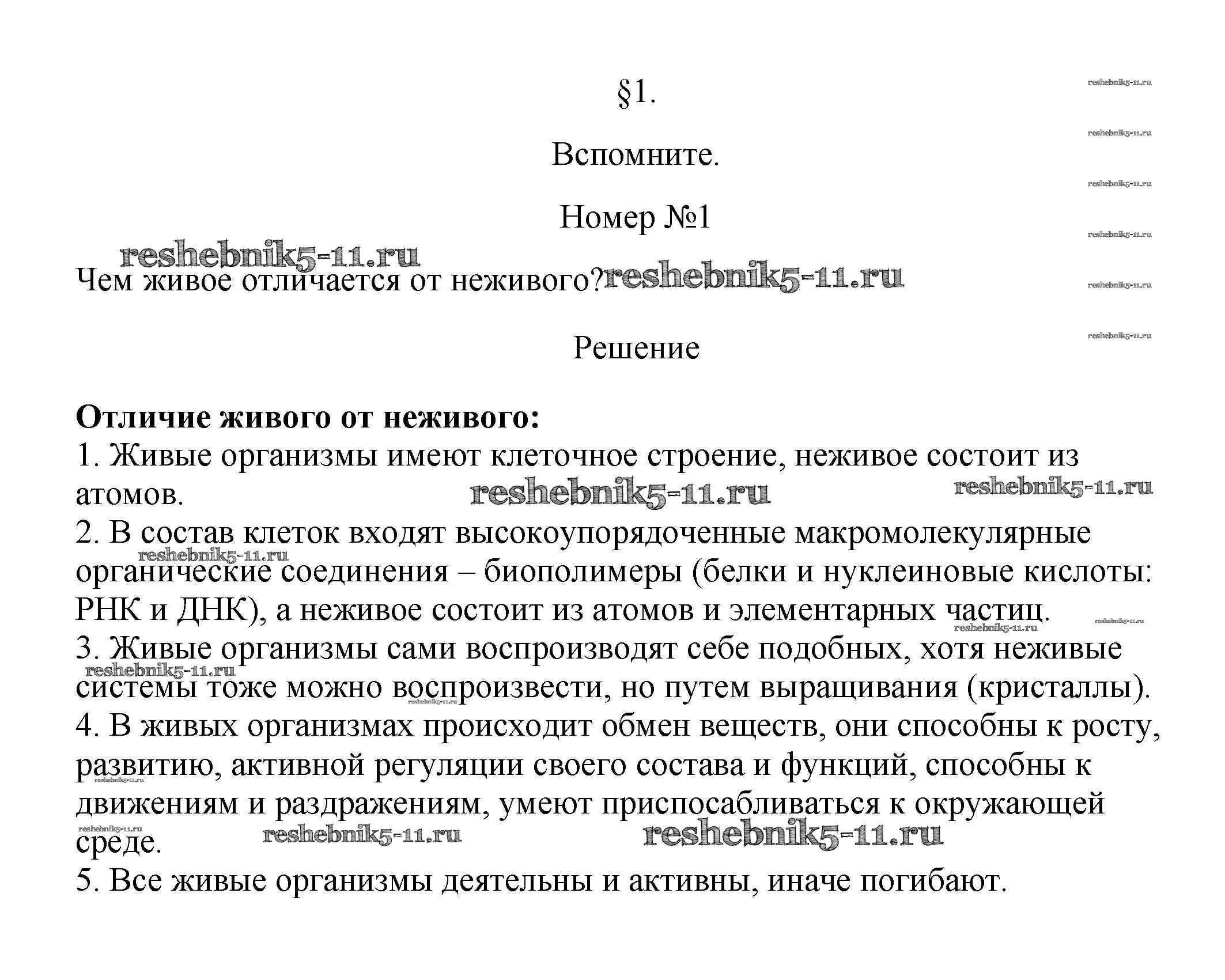 Готовая домашняя работа с ответами по Биологии за 5, 6 класс Пасечник, Суматохин, Калинова, Гапонюк Учебник Линия жизни Просвещение 2020 ФГОС - Вспомните 1