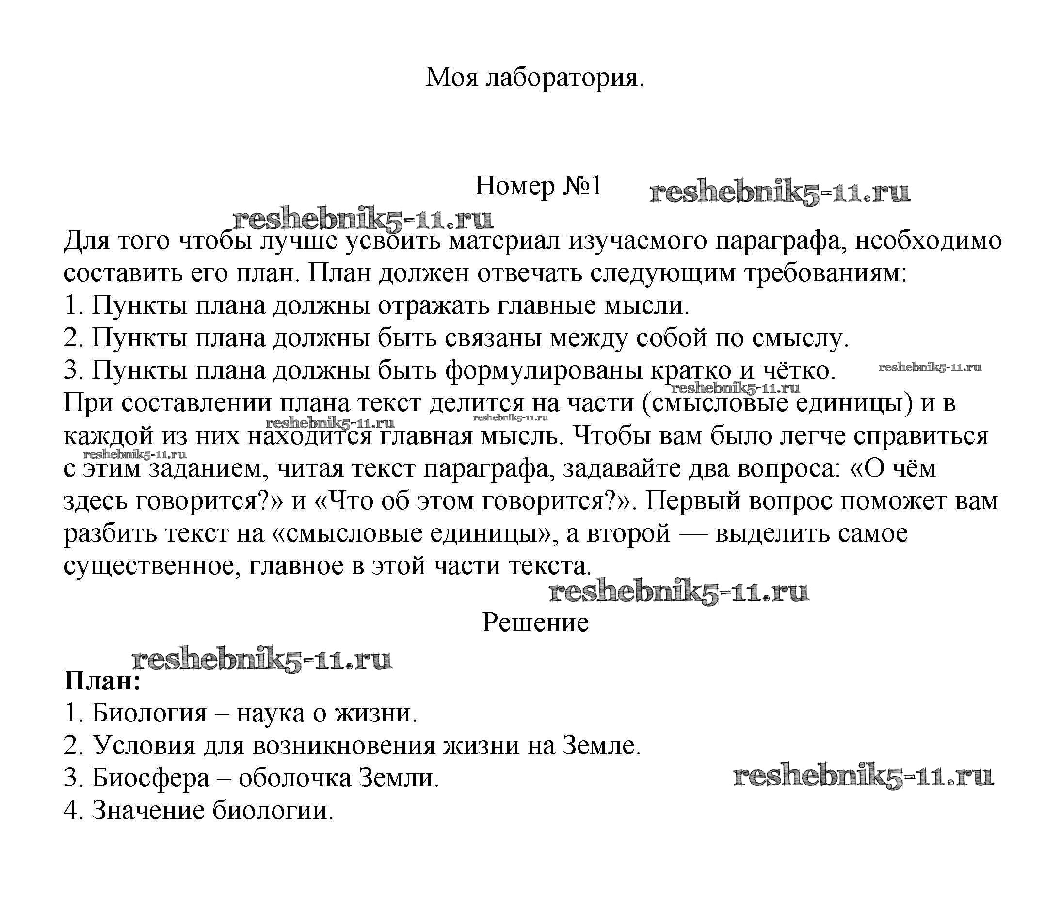 Готовая домашняя работа с ответами по Биологии за 5, 6 класс Пасечник, Суматохин, Калинова, Гапонюк Учебник Линия жизни Просвещение 2020 ФГОС - Моя лаборатория 1