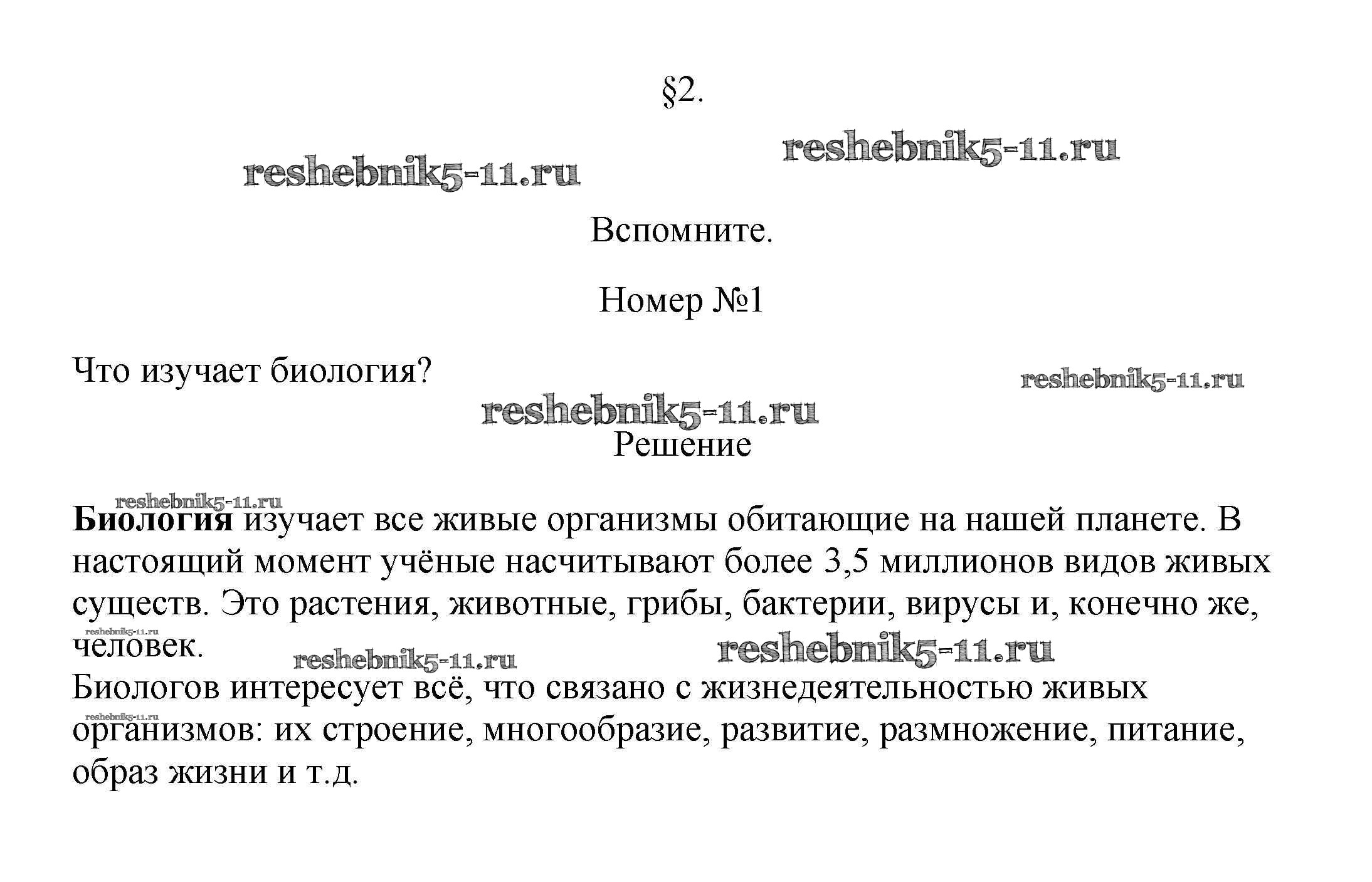 Готовая домашняя работа с ответами по Биологии за 5, 6 класс Пасечник, Суматохин, Калинова, Гапонюк Учебник Линия жизни Просвещение 2020 ФГОС - Вспомните 1