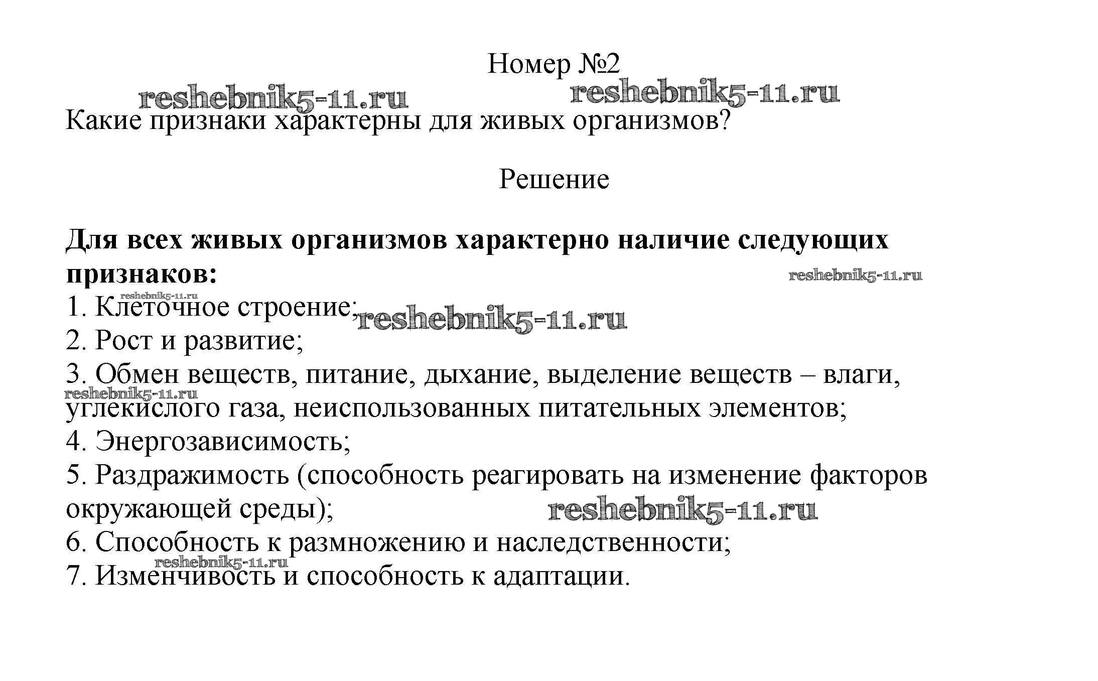Готовая домашняя работа с ответами по Биологии за 5, 6 класс Пасечник, Суматохин, Калинова, Гапонюк Учебник Линия жизни Просвещение 2020 ФГОС - Вспомните 2