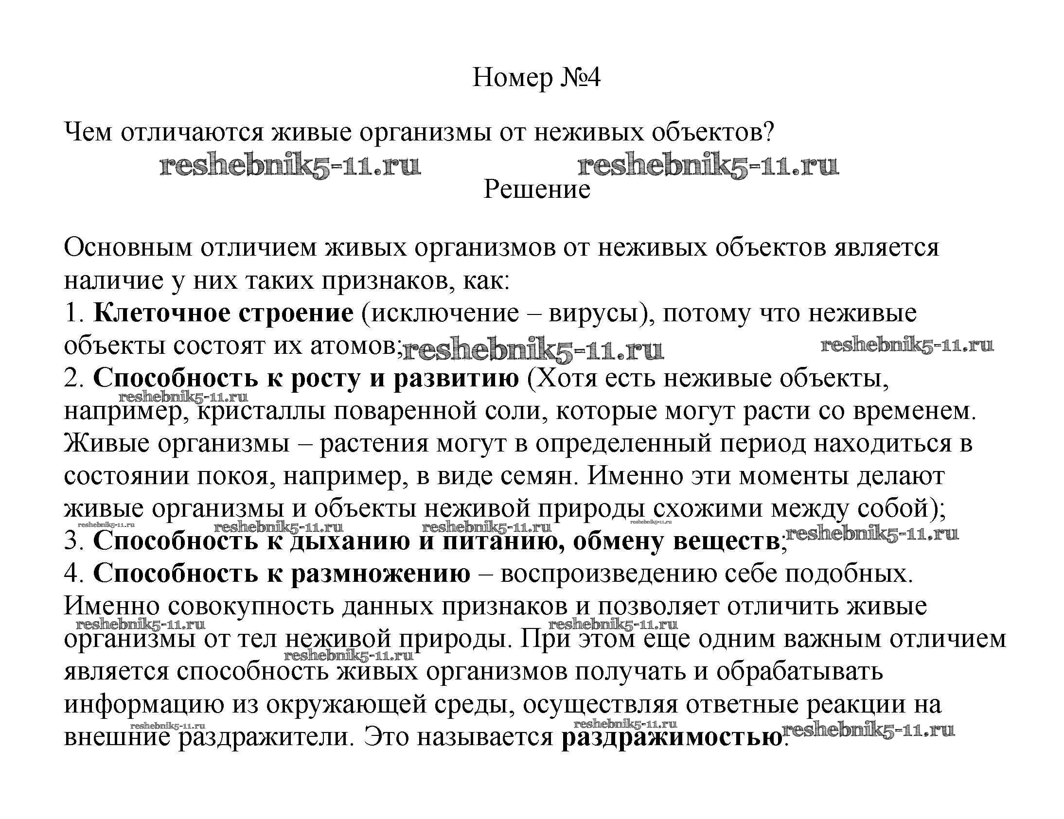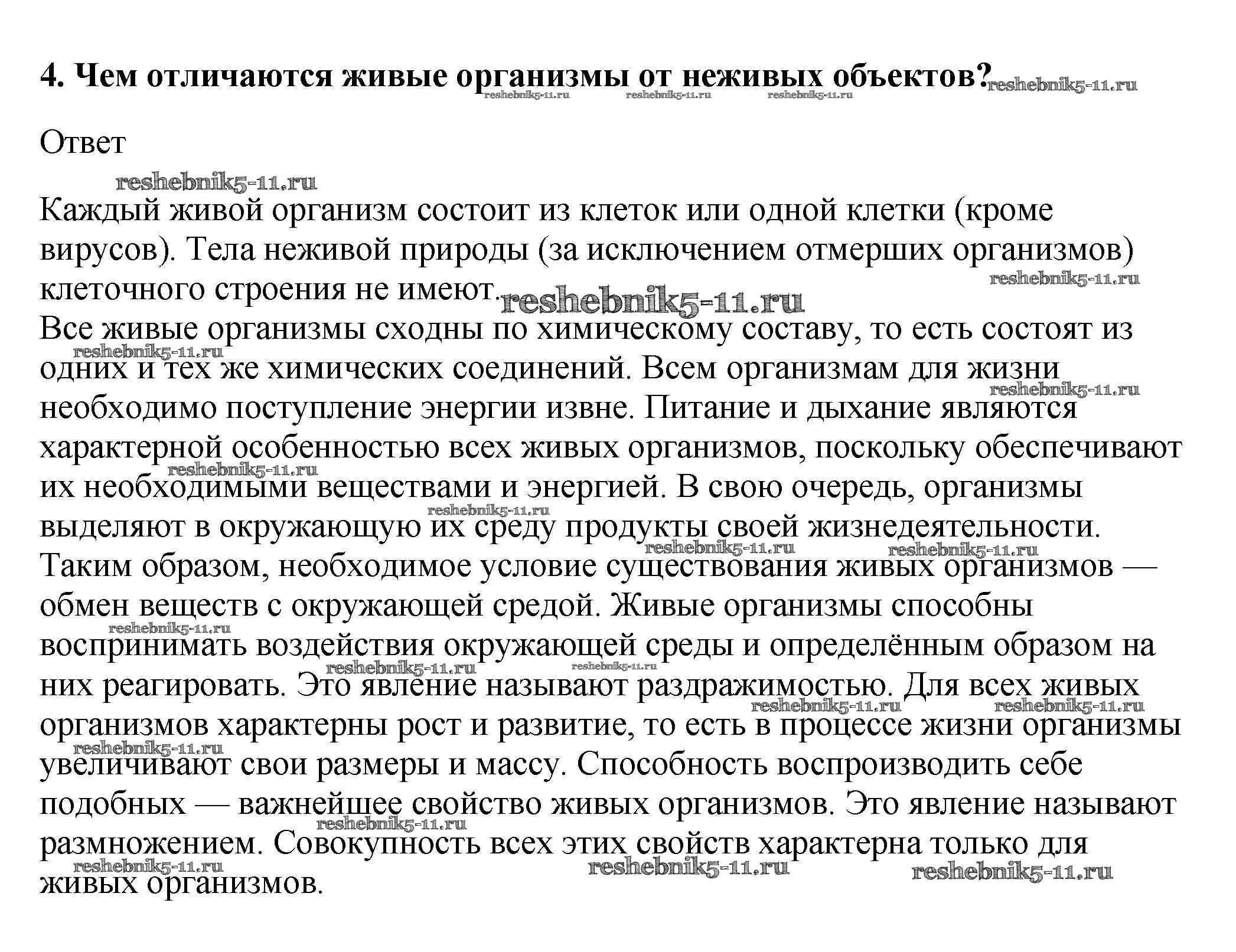 Готовая домашняя работа с ответами по Биологии за 5, 6 класс Пасечник, Суматохин, Калинова, Гапонюк Учебник Линия жизни Просвещение 2020 ФГОС - Вопросы 4